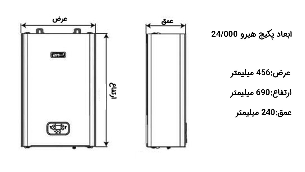 ابعاد پکیج لورچ مدل هیرو 24